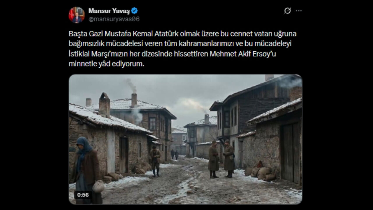 Paylaşımda, Türkiye’nin bağımsızlığı için verilen mücadelede rol oynayan isimler saygıyla anıldı. Başkan Mansur Yavaş, özellikle Kurtuluş Savaşı’nın lideri Gazi Mustafa Kemal Atatürk’e ve İstiklal Marşı’nın yazarı Mehmet Akif Ersoy’a dikkat çekti.