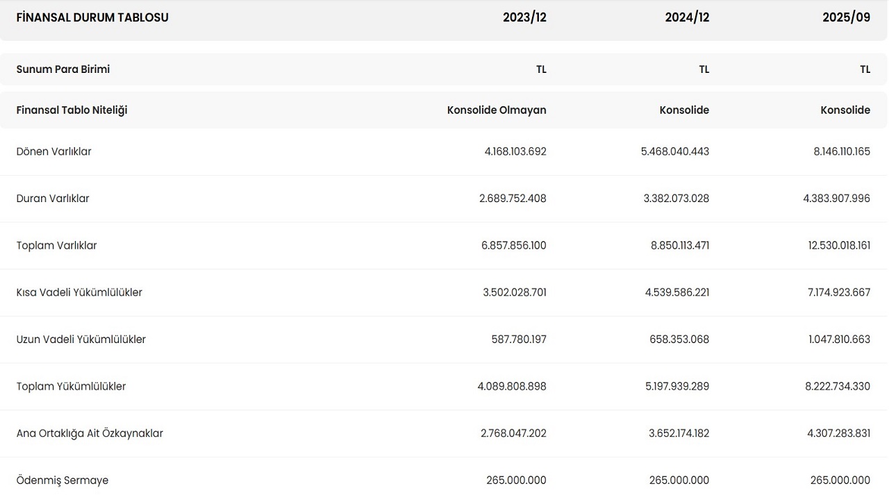 Kayseri merkezli olarak faaliyet gösteren şirketlerden olan Mega Metal Sanayi ve Ticaret A.Ş.'nin 2025 yılı 3. çeyrek bilançosu KAP üzerinden yatırımcıları ve kamuoyuna deklare edildi. Firmanın satışlarının hem geçen çeyreğe ve hem de geçen yıla göre arttığı görüldü. Net karlılık ise geçtiğimiz seneye göre artmasına rağmen, önceki çeyreğe göre gerileme kaydetti. İşte detaylar: