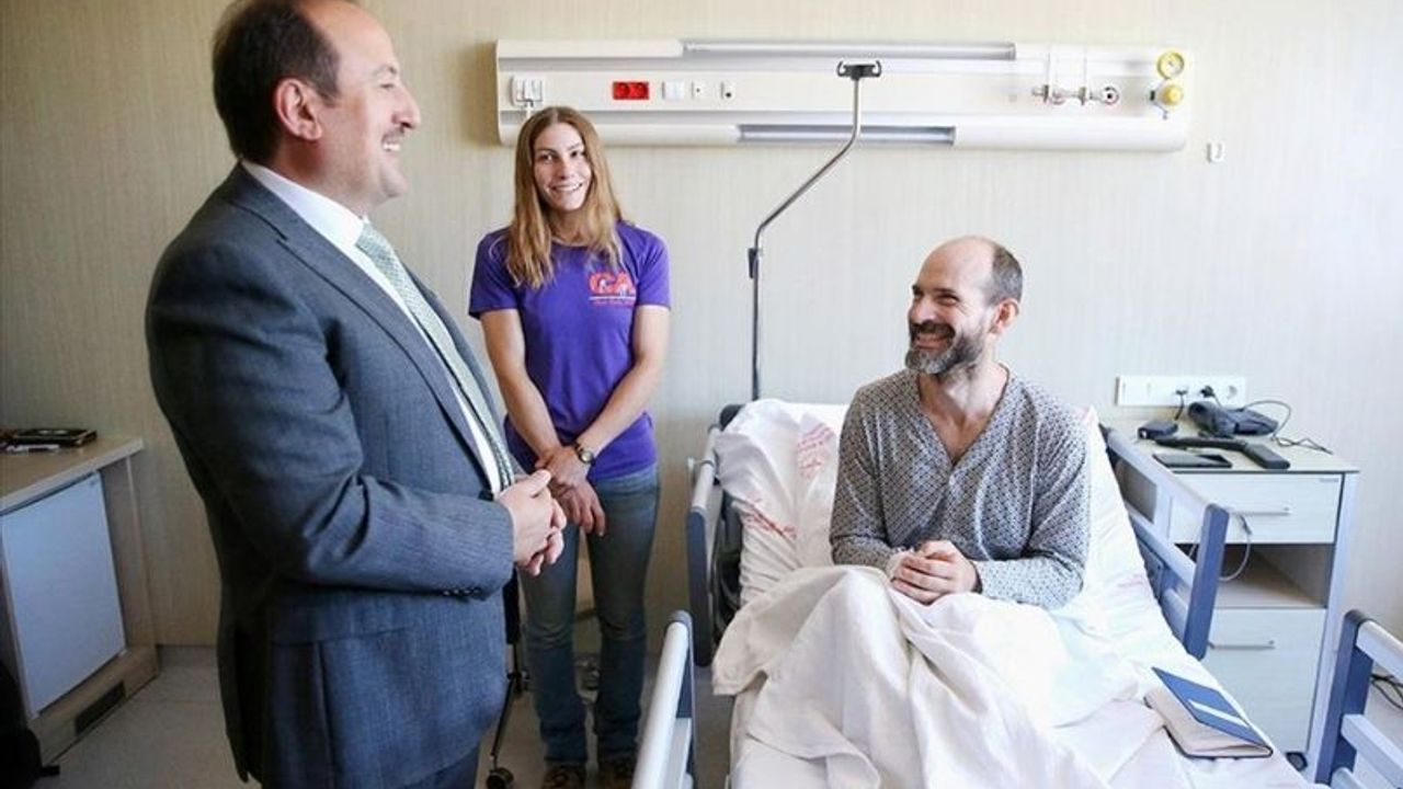 ABD'li dağcının sağlık durumu hakkında bilgi alan Pehlivan, Dickey ve nişanlısıyla bir süre sohbet etti.