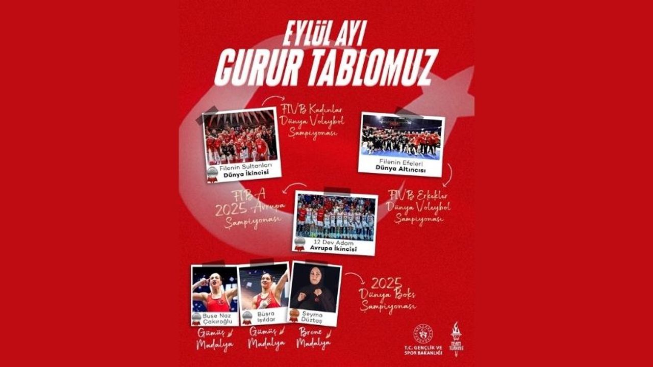 Eylül ayı, Türk spor tarihi açısından unutulmaz anlara sahne oldu. Olimpik ve paralimpik branşlarda mücadele eden milli sporcular, Avrupa ve Dünya şampiyonalarında önemli dereceler elde ederek ay yıldızlı bayrağı dalgalandırdı.