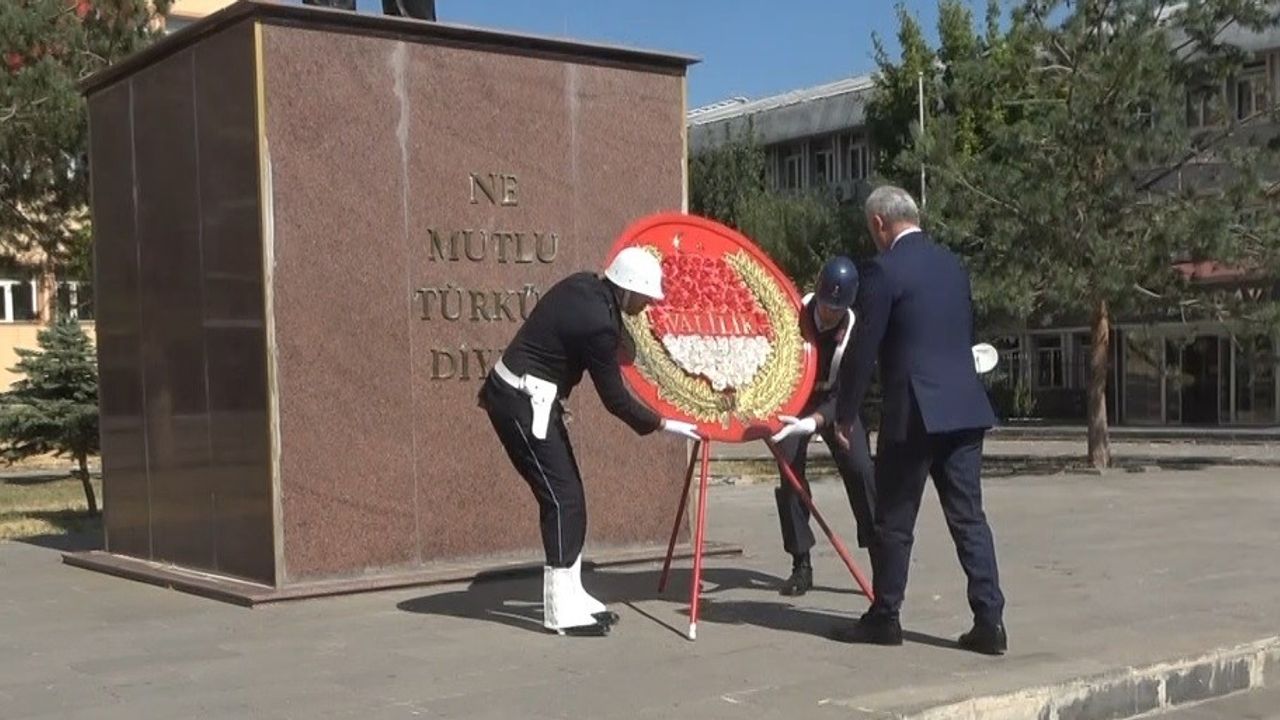 Muş'ta, Garnizon şehitliğinin ziyaret edilmesiyle başlayan tören, Atatürk Anıtı'na çelenk sunumuyla devam etti.