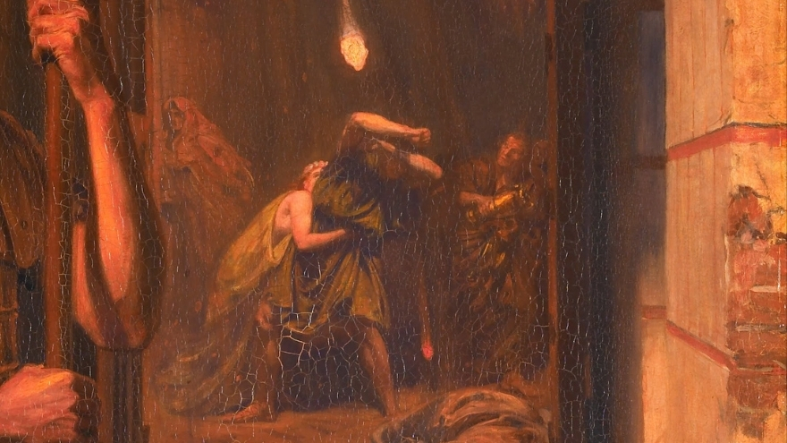 Arka planda diğer Pompeii sakinleri, kaos ve ateşten kaçmaya çalışırken, nöbetçinin duruşu metanet ve sadakati simgeliyor. Poynter’ın ışık ve gölge kullanımı, sahnedeki gerilimi ve trajik güzelliği etkileyici biçimde aktarıyor.