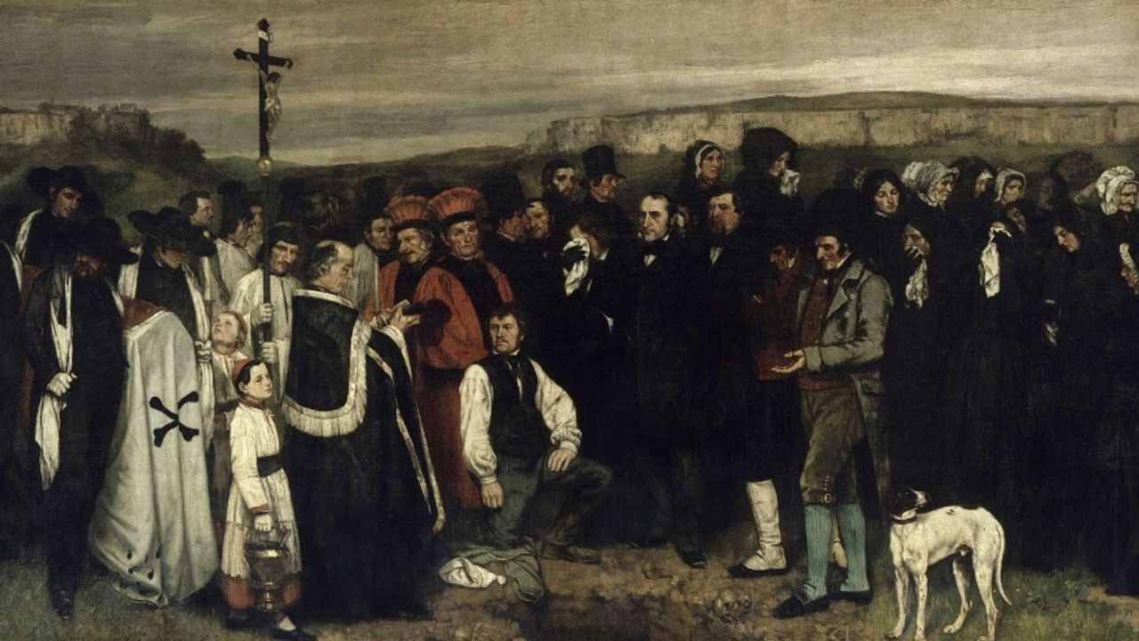 Gustave Courbet, 1849-1850 yılları arasında yaptığı Ornans’ta Bir Cenaze adlı eseriyle yalnızca bir cenaze törenini değil, 19. yüzyıl insanının dünyayla kurduğu ilişkiyi de resmetti. Gösterişten uzak ve idealize edilmemiş figürler, ağır renkler ve donuk bir atmosferle birleşerek izleyiciyi sessiz ama derin bir yüzleşmeye davet ediyor.
