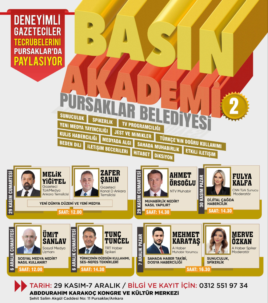 Pursaklar Belediyesinin ücretsiz düzenleyeceği 2. Basın Akademisi, gazetecilikten dijital içerik üretimine, kamerayla çekim tekniklerinden kurguya kadar uzanan geniş bir eğitim yelpazesi sunacak.