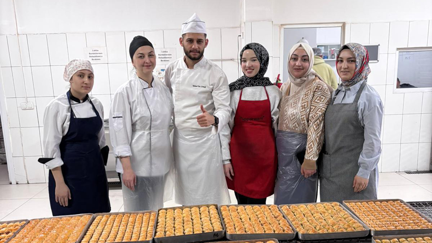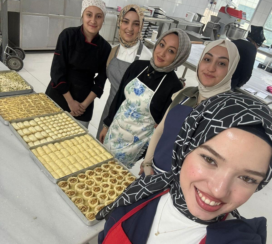 Eğitimler, Şef Mahmut Dolmacı’ya ait, baklava ve börek imalathanesinde gerçekleştirildi.