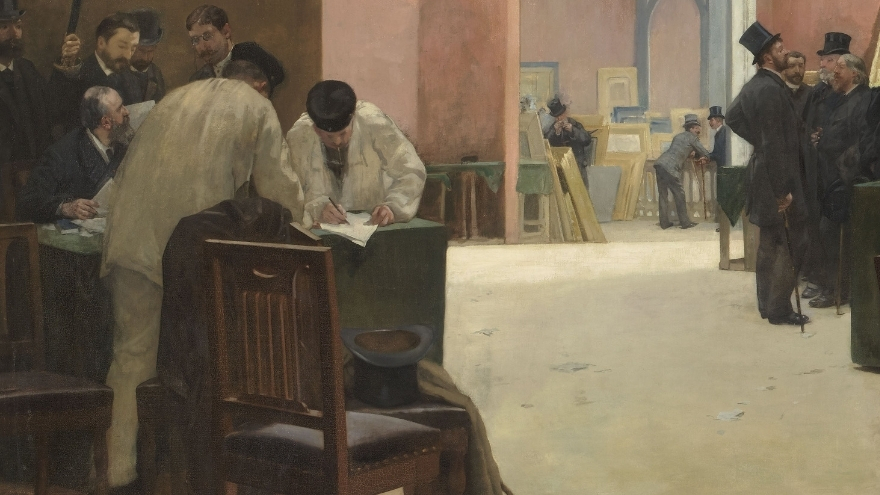Salon, 1699’da kurulduğunda belki de kimse onun 19. yüzyılın ikinci yarısında sanatçılar için nasıl bir cazibe merkezi olacağını tahmin edemezdi. Gervex, bu büyülü dünyayı Resim Jürisi Oturumu tablosunda öyle bir yakalıyor ki, tabloya bakıldığında jürinin kararsızlığını, eleştirmenlerin şaşkınlığını hissettiriyor.
