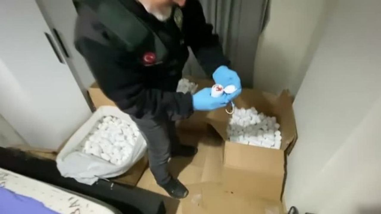 Düzenlenen operasyonda adres ve şüphelilerin üzerlerinde yapılan aramalar ve kontrollerde 103 bin 308 uyuşturucu hap ile 1,53 gram sentetik uyuşturucu ele geçirildi.
