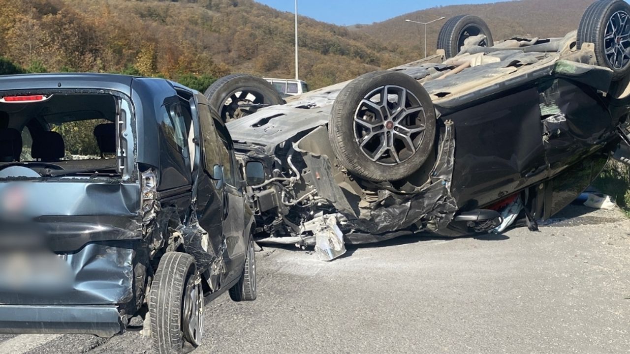 Kaza sonrası otomobil takla atarak yol kenarında ters döndü. Araçta bulunan sürücü Y.N. ile E.A. ve E.A.Ç. (5) yaralandı. Hafif ticari araç sürücüsü M.A. da kazada çeşitli yerlerinden yaralandı.