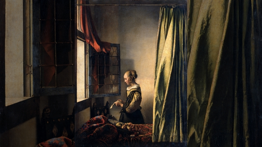 Vermeer’in Açık Pencereden Mektup Okuyan Kız tablosu, sessiz bir özlem sahnesidir. Pencereden giren ışık, genç kadının mektubu okumasını sağlar. Tabloda yer alan mektup uzakta olan bir sevgiliden gelmiştir ve yatak üzerindeki devrilen meyvelerin bastırılamayan özlemi simgeler.