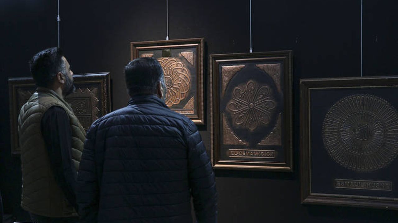 Sergide ayrıca Türkiye’de ilk ve tek olma özelliği taşıyan, bakır rölyef ve hat sanatının bir arada işlendiği 35 eser sanatseverlerin beğenisine sunuldu.