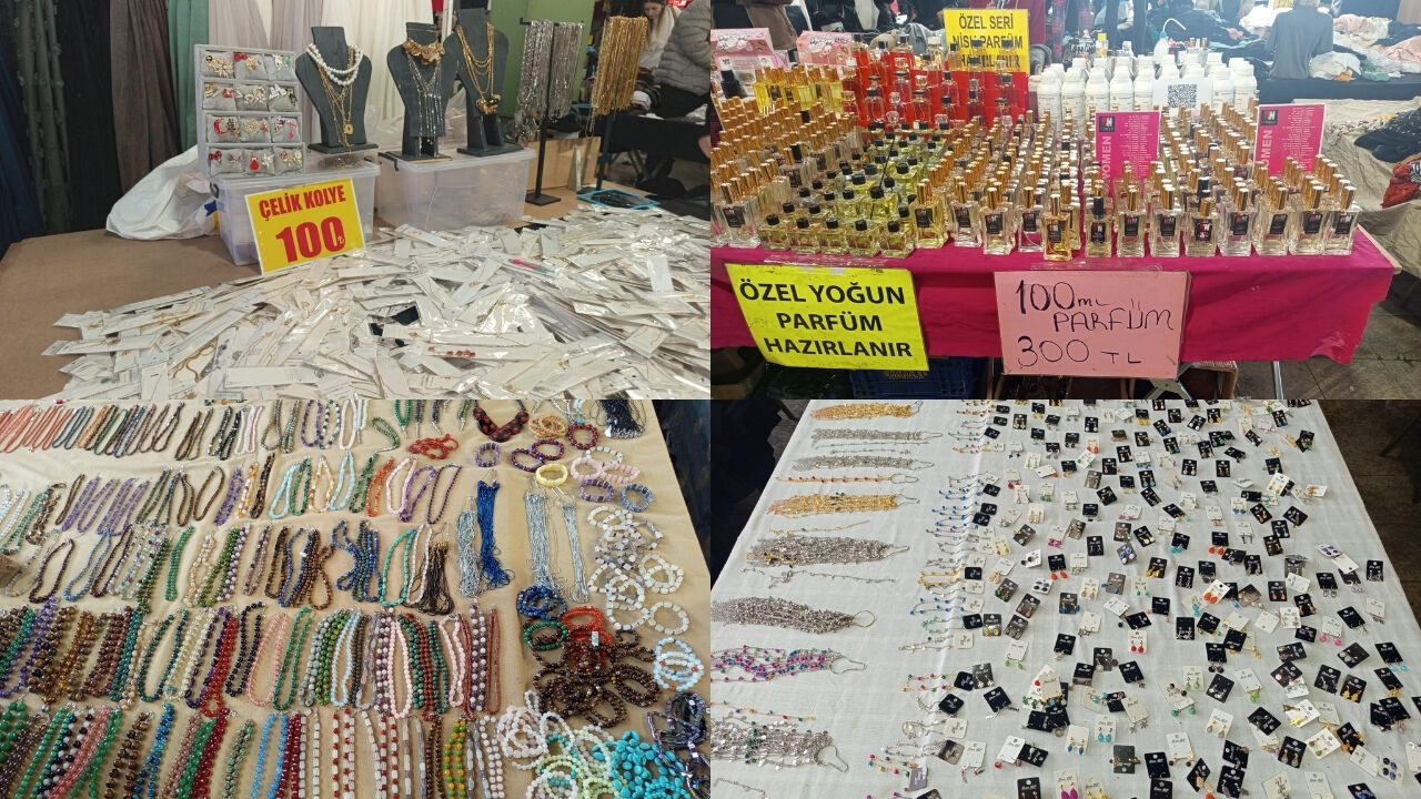 Halhal 20 TL’den, çelik kolyeler 100 TL’den, küpeler 10 TL’den satışta. El yapımı ve doğal taşlı takılar pazarda ilgi odağı olmaya devam ediyor.