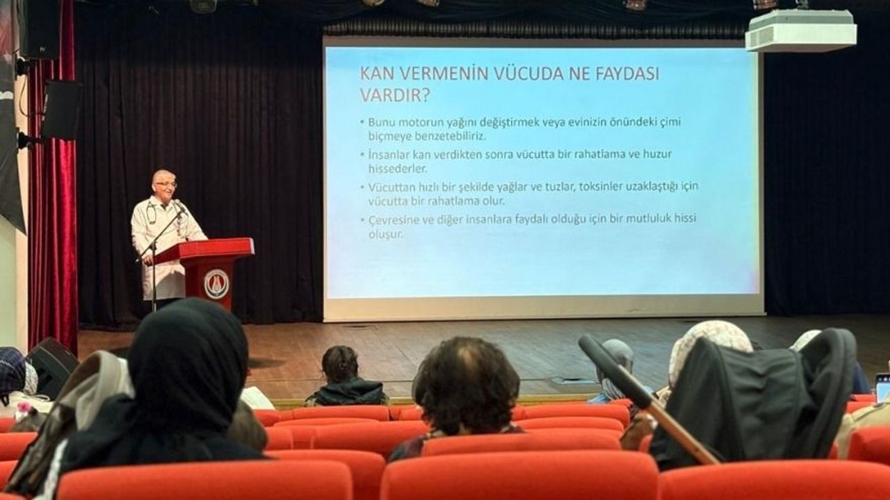 Düzenlenen seminerde Hematoloji Uzmanı Prof. Dr. Ali Koşar, Sincanlı vatandaşlara kan bağışının önemini anlattı.