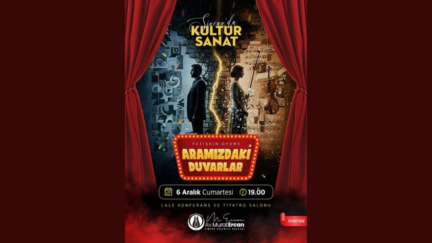 Sincan Belediyesi, kültür ve sanat faaliyetlerine bir yenisini ekleyerek Aramızdaki Duvarlar tiyatro oyununu ilçe sakinleriyle buluşturacağını açıkladı. Sosyal medya üzerinden yapılan paylaşımda, oyunun insanların arasında görünmez olan mesafeleri, birbirinden uzaklaşan duyguları ve hayatın kırılma anlarını merkezine aldığı vurgulandı.