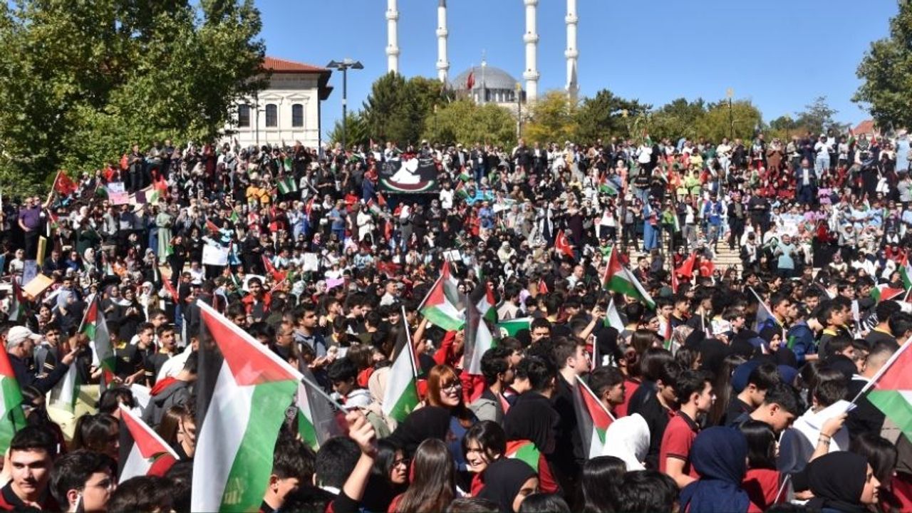 Sivas, İsrail’in Gazze saldırılarının yıl dönümünde tek yürek oldu. Yaklaşık 5 bin öğrenci ve sivil toplum kuruluşu temsilcisi, İnönü Bulvarı’nda ellerinde pankart, döviz ve Filistin bayraklarıyla yürüyerek saldırılara tepki gösterdi. Etkinlik dua ve balon bırakılmasıyla son buldu.