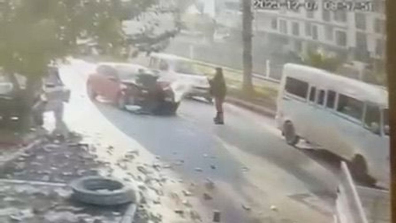 Kazayı gösteren görüntülerin, cadde üzerindeki bir iş yerinin güvenlik kamerasına yansıdığı ortaya çıktı.