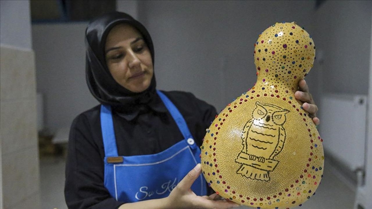 Banaz ilçesinde yaşayan, 2 çocuk annesi 45 yaşındaki Yıldız Yılmaz, iki yıl önce sosyal medya üzerinden izlediği bir videoda su kabaklarının işlenerek çeşitli aksesuarların yapıldığını gördü.