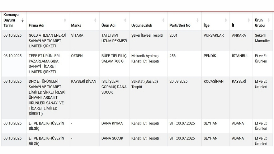 Tüketicilere, güvengida.tarimorman.gov.tr adresinden güncel listeyi takip etmeleri ve şüpheli ürünlerden uzak durmaları öneriliyor.