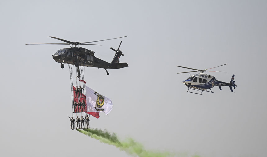 Nefes kesen gösterilerde Türk Yıldızlarına helikopterler de eşlik etti.