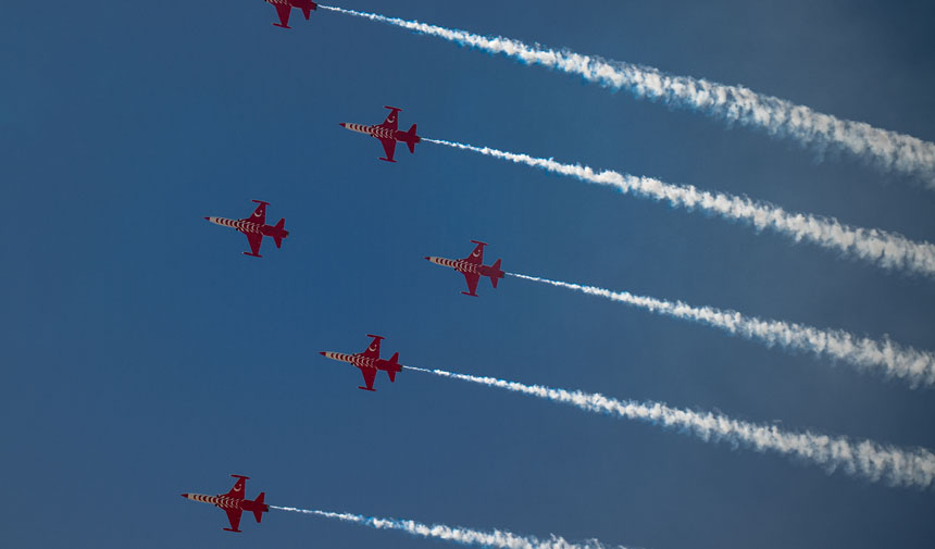 Türkiye Teknoloji Takımı Vakfı ve Sanayi ve Teknoloji Bakanlığı yürütücülüğünde, Türkiye'nin milli teknoloji ekosisteminde kritik rol oynayan bakanlıkların, başkanlıkların, kamu ve özel sektör kuruluşlarının, akademik kurumların ve medya şirketlerinin de aralarında bulunduğu 125 kurumla gerçekleştirilen TEKNOFEST Ankara kapsamında bugün Türk Yıldızları, gösteri uçuşu gerçekleştirdi.