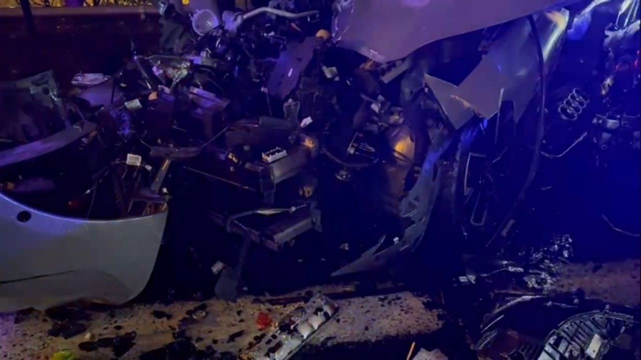 Edinilen bilgilere göre, sebze ve meyve yüklü bir kamyonet ile dört otomobil henüz belirlenemeyen bir nedenle çarpıştı. Çarpışmanın etkisiyle araçlardan biri bariyerlere çarparak dururken, kamyonet ile diğer araçların arasında kalan bir otomobil adeta metal yığınına dönüştü.