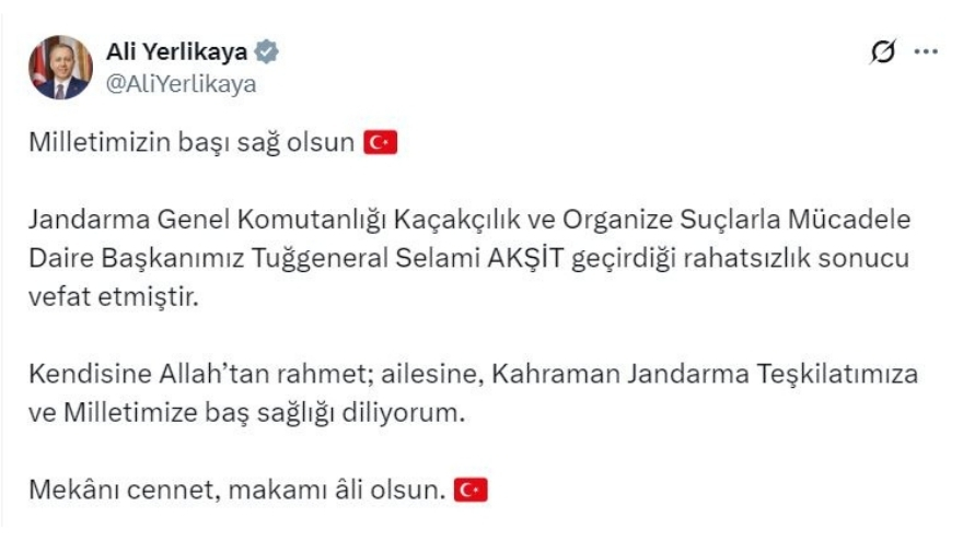 Jandarma Genel Komutanlığı Kaçakçılık ve Organize Suçlarla Mücadele (KOM) Daire Başkanı Tuğgeneral Selami Akşit, sabah saatlerinde geçirdiği kalp krizi nedeniyle yaşamını yitirdi. Türkiye’nin güvenlik teşkilatında önemli görevler üstlenen Akşit’in ani ölümü hem teşkilat içinde hem de kamuoyunda büyük üzüntü yarattı.