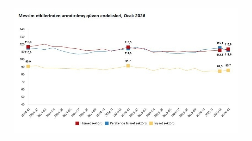 TÜİK tarafından açıklanan Ocak 2026 verileri, güven endekslerinin sektörler arasında farklı yönlerde hareket ettiğini gösterdi.
