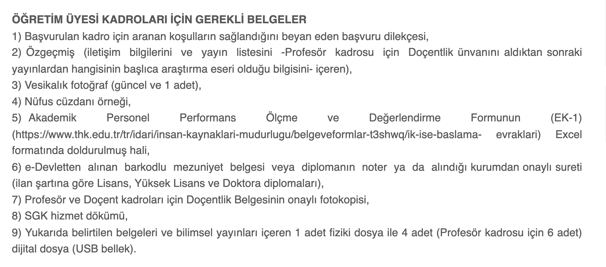 Öğretim üyesi kadrolarına yönelecek adayların ise Türk Hava Kurumu Üniversitesi Öğretim Üyeliğine Yükseltilme, Atanma ve Görev Süresi Uzatma Yönergesindeki özel şartları yerine getirmesi bekleniyor.