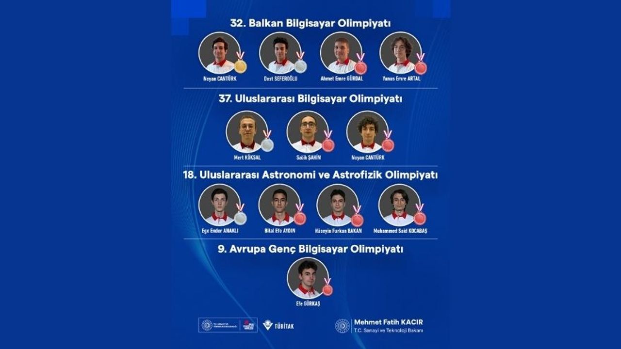 Sanayi ve Teknoloji Bakanı Mehmet Fatih Kacır, dünya genelinde düzenlenen bilgisayar, astronomi ve astrofizik olimpiyatlarında madalya kazanan Türk öğrencileri tebrik etti.