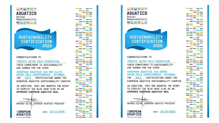 Türkiye Sutopu Federasyonu, organizasyon sürecinde hayata geçirilen sürdürülebilirlik odaklı uygulamalar sayesinde European Aquatics tarafından verilen en üst seviye Altın (GOLD) Sertifika ile ödüllendirildi.