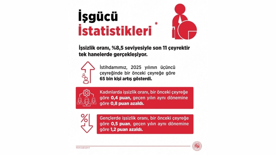 “Türkiye istihdam kapasitesini güçlendirme rotasında ilerlemeyi sürdürüyor. İşsiz sayısı, 2025 yılının 3'üncü çeyreğinde bir önceki çeyreğe göre 26 bin kişi azaldı” ifadelerini kullandı.