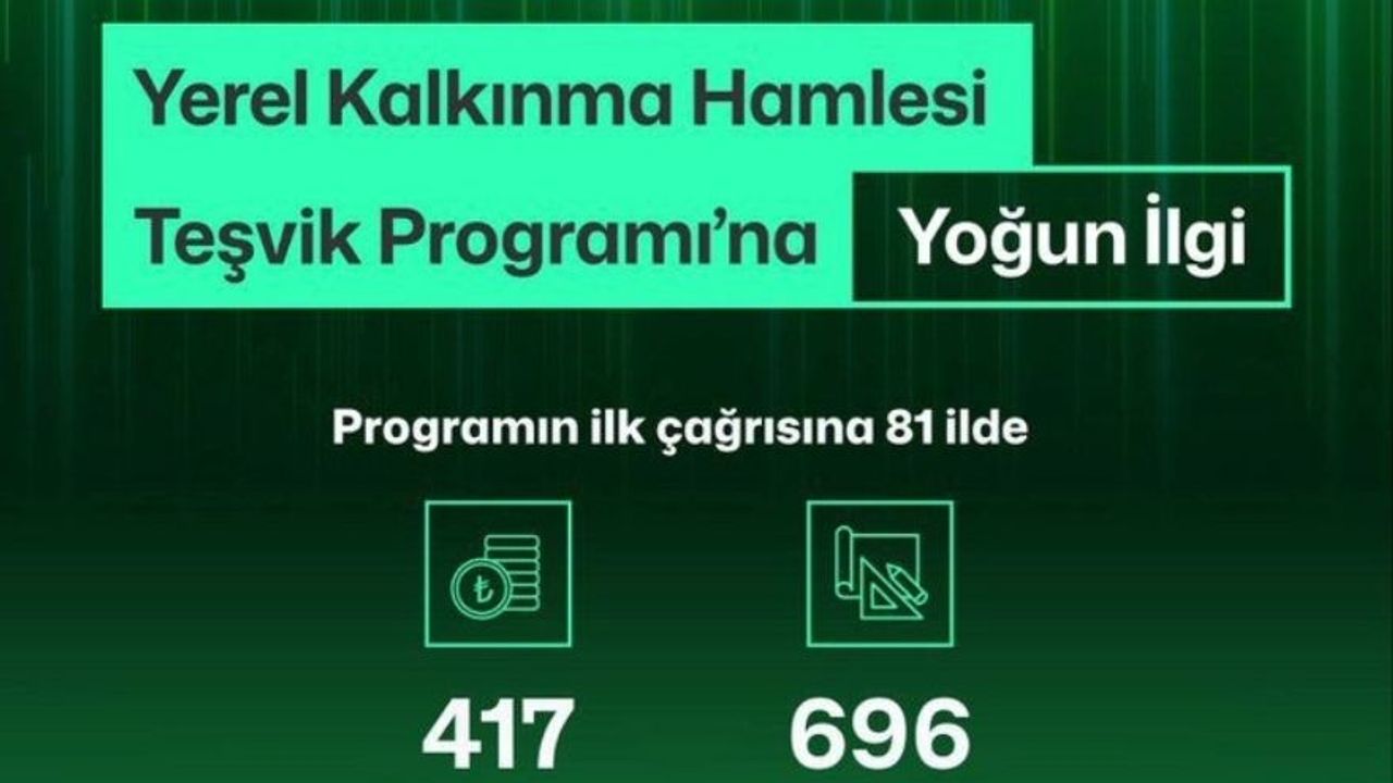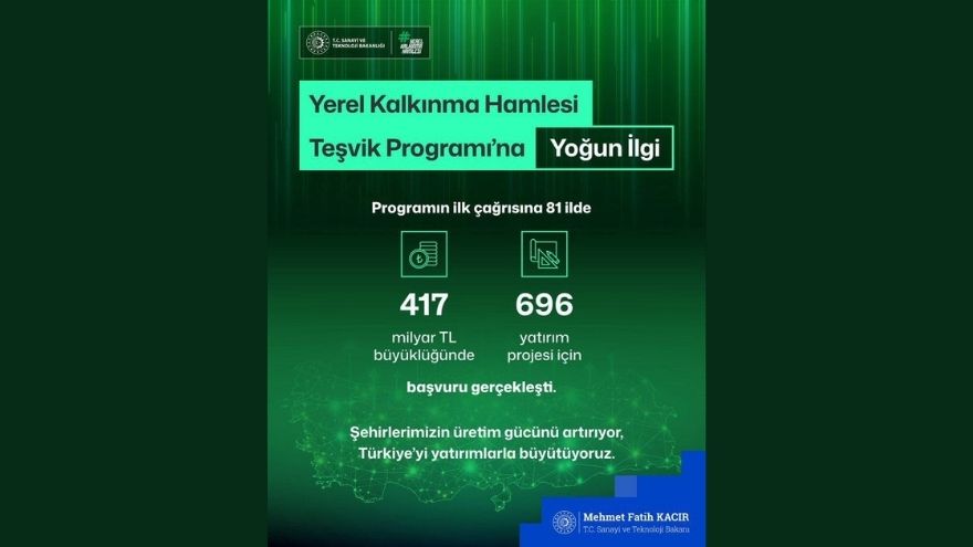 Program kapsamında desteklenecek projelerle şehirlerde yeni istihdam alanları yaratılacak ve yerel üretim teşvik edilecek. Kacır, “Her ilimizde 4 öncelikli yatırım konusuna güçlü teşvikler sunduğumuz 'Yerel Kalkınma Hamlesi Programı'nın ilk çağrısına; 81 ilimizin tamamında, 417 milyar TL'yi aşan yatırım tutarına sahip 696 proje başvurusu yapıldı” dedi.