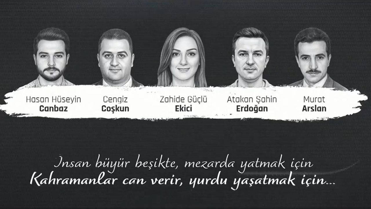 Paylaşımda, “Şehitlerimiz Atakan Şahin Erdoğan, Cengiz Coşkun, Zahide Güçlü Ekici, Hasan Hüseyin Canbaz ve Murat Arslan’ı rahmetle anıyor, aziz hatıralarını yaşatmak için daha çok çalışacağız” ifadeleri yer aldı.