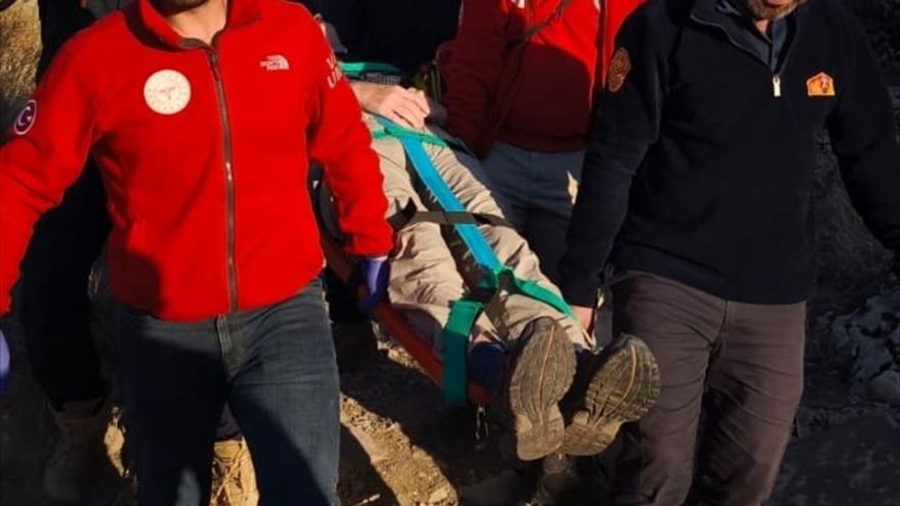 Kısa süre içinde bölgeye ulaşan ekipler, ilk müdahalesi yapılan turisti mahsur kaldığı mağaradan çıkararak sedyeyle kaleden indirdi.