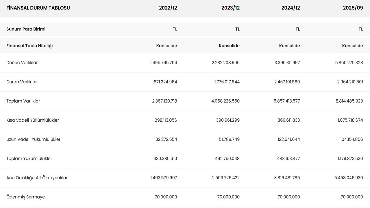 Payları Borsa İstanbul'da VERUS koduyla işlem görmekte olan Verusa Holding A.Ş.'nin 2025 yılı 3. çeyrek finansal tabloları Kamuyu Aydınlatma Platformu üzerinden yatırımcıları ve kamuoyu ile paylaşıldı. Firmanın geçen çeyreğe göre satışlarını artırsa da, geçtiğimiz yılın aynı döneminin altında kaldığı görüldü. Karlılıkta ise holding hem geçen çeyreğin ve hem de geçtiğimiz yılın üzerine çıkmayı başardı.