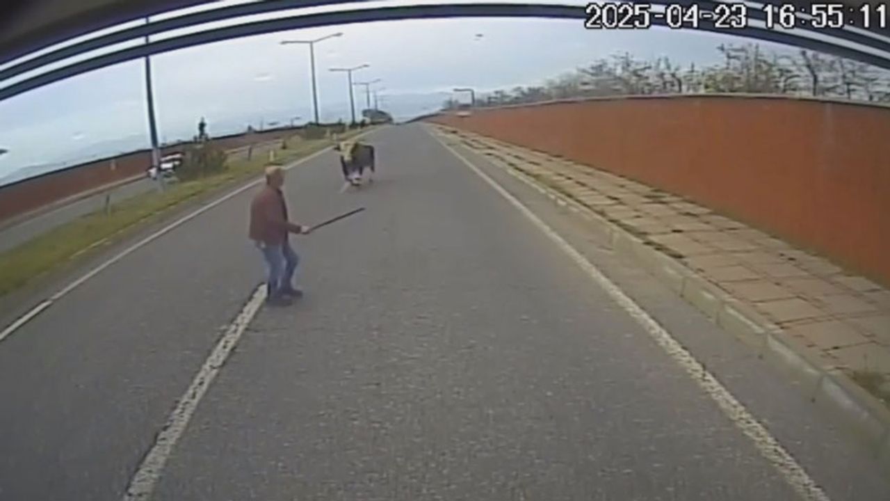 Bingöl'de otobüs seferi sırasında yola aniden çıkan bir boğayı uzaklaştırmak isteyen şoför, hiç beklemediği bir saldırıyla karşılaştı. Elindeki sopayla hayvana yaklaşan sürücü, boğanın hedefi oldu. Saldırı anları otobüsün...