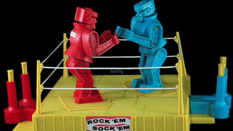 Ve şimdi sıra, tek bir yumrukla kafaları fırlayan iki plastik robotun büyük ekrana taşınmasında.