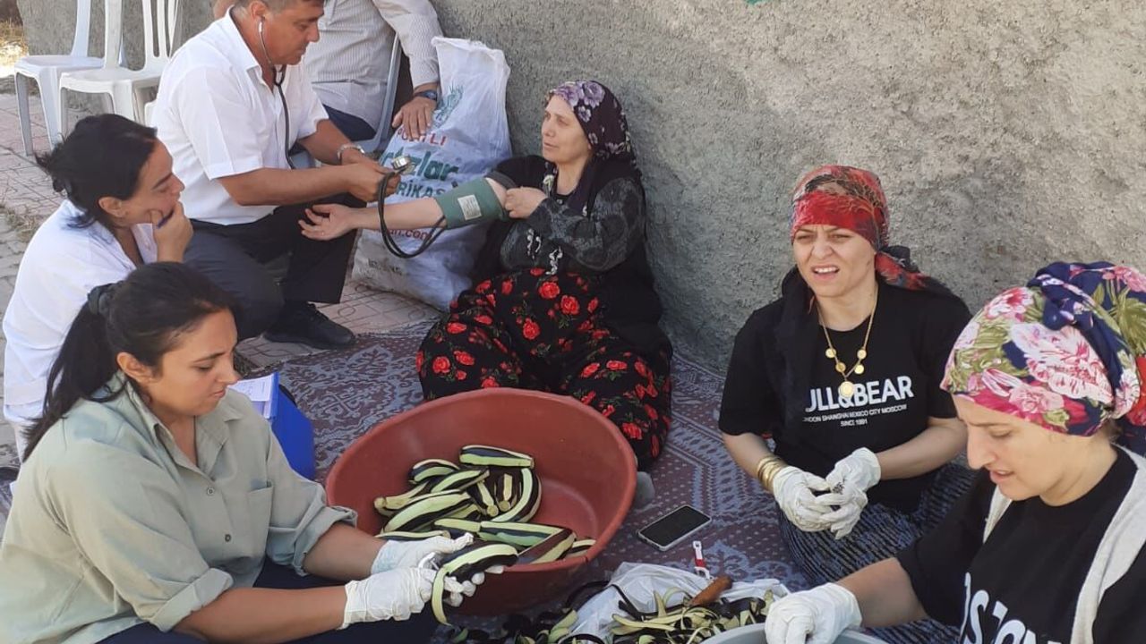 İlçe Sağlık Müdürlüğü Mobil Sağlık ekibi, köylerde sağlık hizmetine ulaşamayan vatandaşların kan şekeri ve tansiyon takiplerini yapıyor.