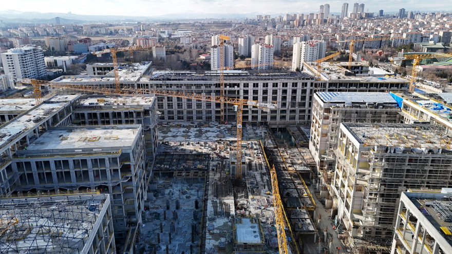 Yenimahalle ilçesindeki eski MİT arazisinin 250 dönümlük bölümünde inşaatı süren Adalet Sarayı, fiziki olarak belirgin hale gelirken kaba yapının 2026 yılı sonuna kadar tamamlanması planlanıyor.