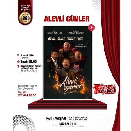 Yenimahalle 7. Tiyatro Festivali kapsamında 9 Şubat 2026 Pazartesi günü ‘Alevli Günler’ isimli tiyatro oyunu sahnelenecek.