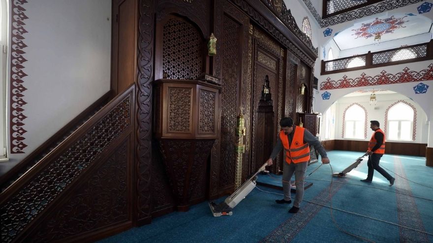 Vatandaşların ibadetlerini daha sağlıklı ve huzurlu bir ortamda yapabilmesi için sahaya inen ekipler, halılarından camlarına, abdesthanelerinden ayakkabılıklara kadar camilerin her noktasını elden geçirdi.
