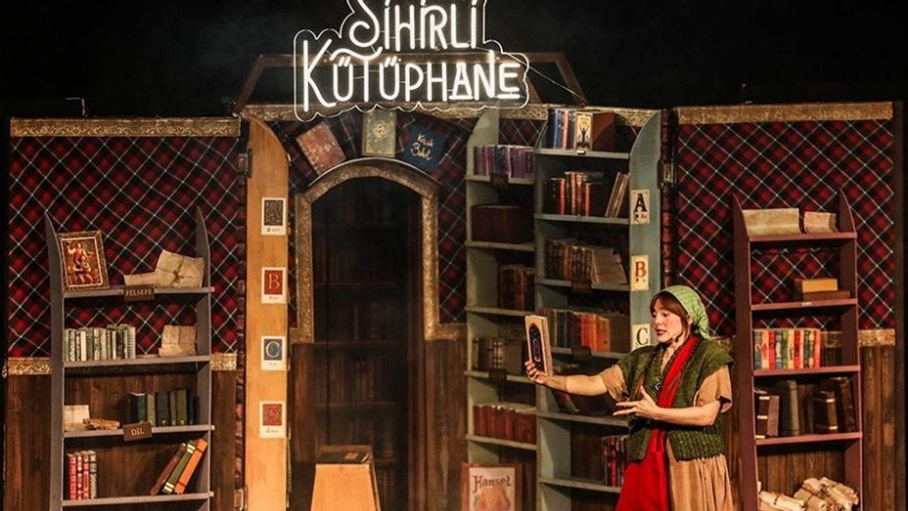 Yağmurdan kaçıp kütüphaneye sığınan Leyla’nın Pedya ve kütüphane müdürü Bay Enkiklios ile birlikte kaybolan kitapları bulmak için yaşadığı serüvenin anlatıldığı ‘Sihirli Kütüphane’ oyunu çocuklara unutulmaz bir tiyatro keyfi yaşattı.