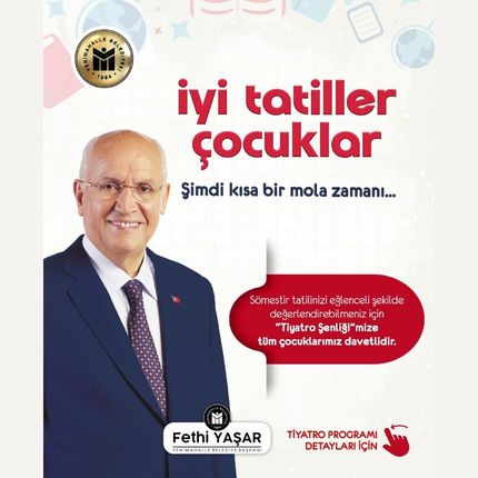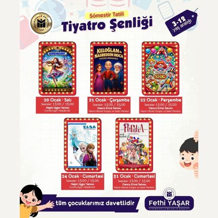 ‘’Sömestr tatilinizi eğlenceli şekilde değerlendirebilmeniz için ‘Tiyatro Şenliği’ne tüm çocuklarımız davetlidir’’
