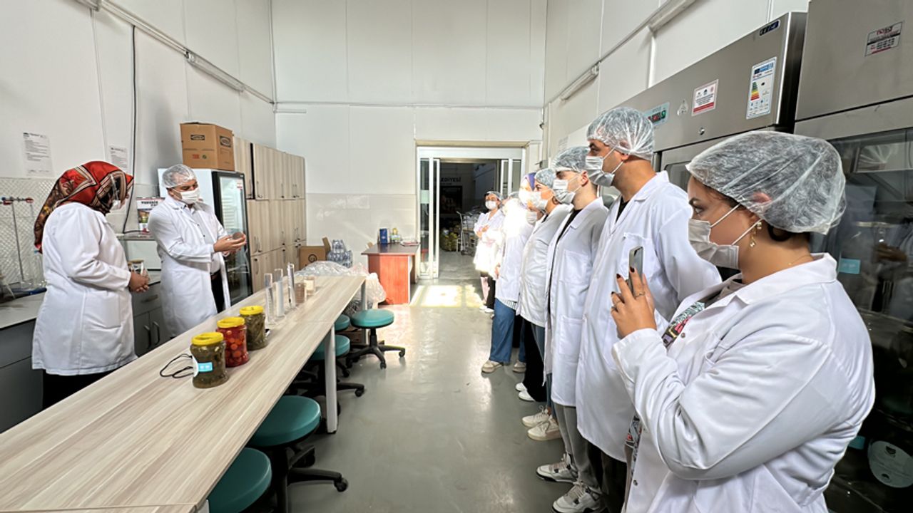 Öğrencilerden Yağmur Bodur, ziyaretin kendisi için oldukça öğretici geçtiğini belirterek, “Turşu üretiminde fermentasyon ve paketleme aşamalarını gözlemledik. Makinede salatalıkların iğnelenmesini izledik, vişne suyu üretimi ve depolama süreçlerini de gördük. Çok değerli bir deneyimdi” ifadelerini kullandı.