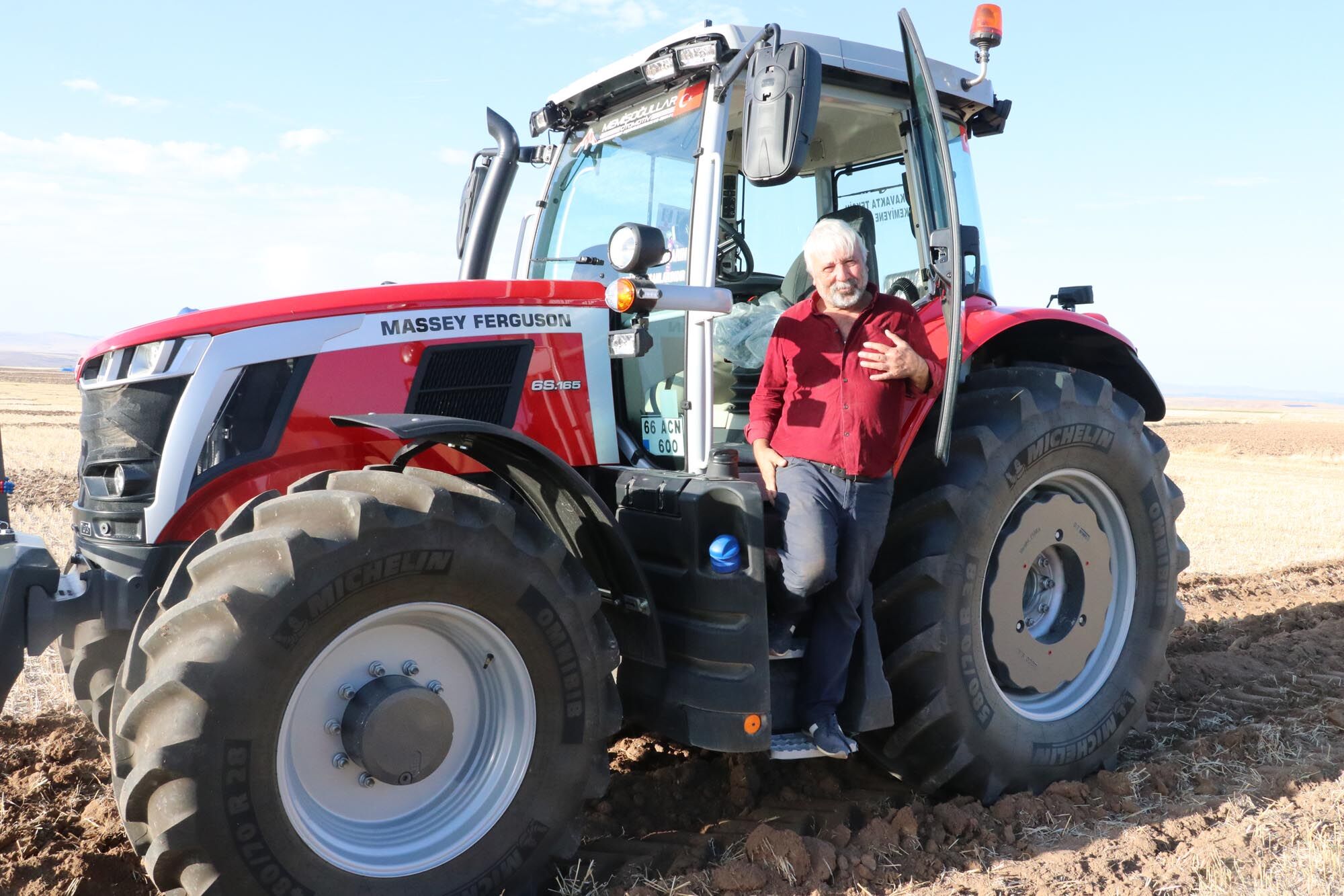 Yerden, tarlasına traktörün pulluğu ile toprakta iz bırakarak "Cumhuriyet 100 yaşında" yazdı.