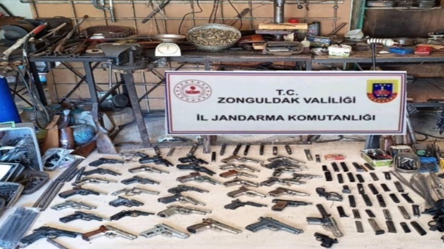Bir adresin silah imalathanesi olarak kullandığı belirlenirken yapılan aramalar ve incelemeler sonucunda 18 ruhsatsız tabanca, 12 ruhsatsız av tüfeği, 37 tabanca gövdesi, 54 tabanca şarjörü, 31 bin 931 mermi ve av tüfek fişeği, 1 kilo 920 gram barut, 3 bin 32 silah parçası ve aparatı, 400 gram av tüfeği saçması ele geçirildi.