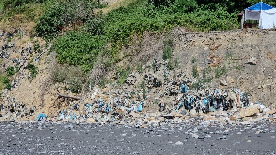 Ancak yıllar boyunca bölgeye bırakılan çöp, hafriyat ve molozlar zamanla ‘çöp dağı’ oluşturdu. Karadeniz’in dalgaları bu birikmiş atıkları alıp sahile taşıyor.